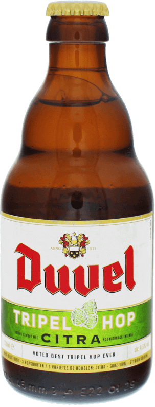 Duvel tripel hop met citra hop is een aromatisch en fruitig bier met een uitgesproken hopkarakter. De frisse toetsen van pompelmoes en tropisch fruit verrijken het smaakpallet.